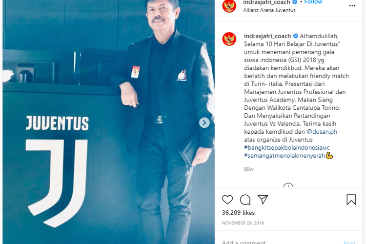 Eks pelatih timnas Indonesia U-19 Indra Sjafri sempat dijagokan jadi pelatih Juventus untuk menggantikan Maurizio Sarri.