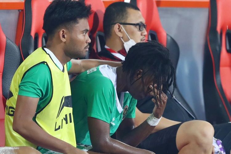 Striker timnas U-23 Indonesia, Ronaldo Kwateh, harus rela jadi korban ketegasan Shin Tae-yong di laga melawan Vietnam, Sabtu (6/5/2022).